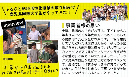 毎日飲みたくなる安心なお茶をつくりたい!その想いからねじめびわ茶は生まれました。