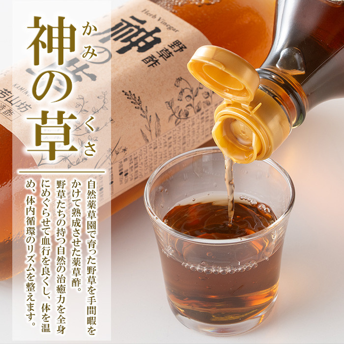 大隅半島に自生する野草数十種類を厳選した健康酢! A40001 野草酢「神の草」(1本・720ml) 肝付町 鹿児島 国産 ドリンク 酢 お酢 飲むお酢 飲む酢 健康 ミネラル 黒糖 ビネガー【芳山坊】