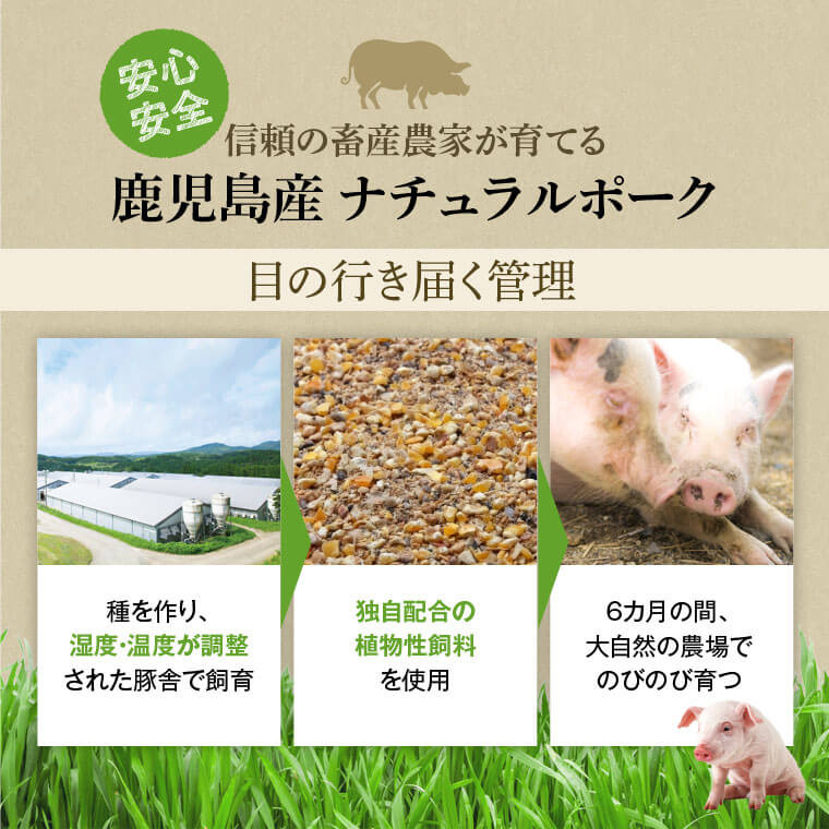 | 容量 | ロース約300g×1パック、モモ約300g×1パック、ウデ約300g×1パック、鹿児島産生姜焼きのタレ2本 |