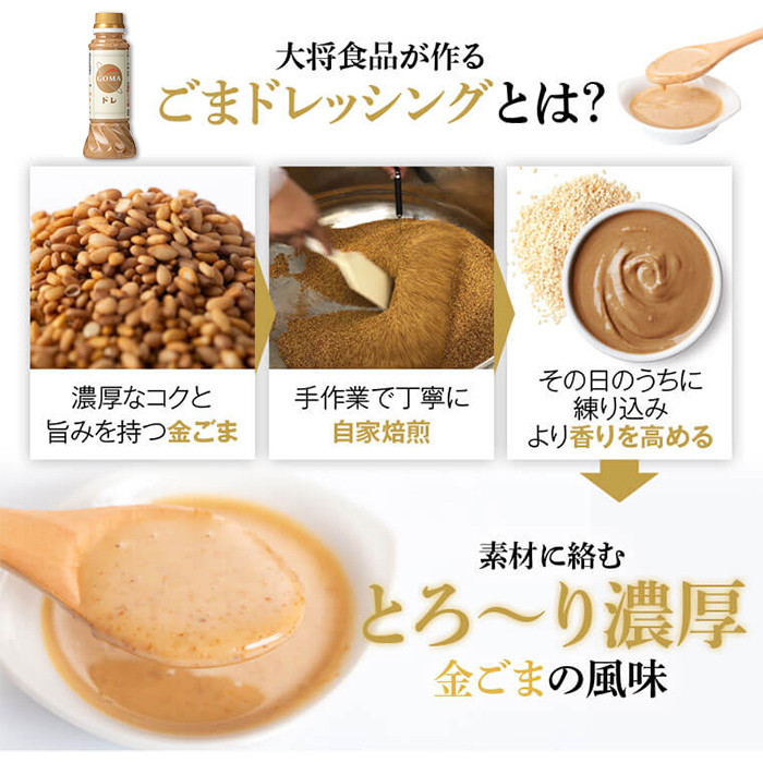 自家焙煎したすりたての金ごまを使用!サラダ、ごま和え、しゃぶしゃぶにも P05002 とろ~り濃厚ごまドレッシング(200ml×3本)自家焙煎 調味料 ごまだれ 胡麻ドレッシング 胡麻 ゴマ たれ しゃぶしゃぶ 冷やし中華 サラダ ごま和え 金ごま ギフト プレゼント 贈答 お中元 お歳暮【大将食品】