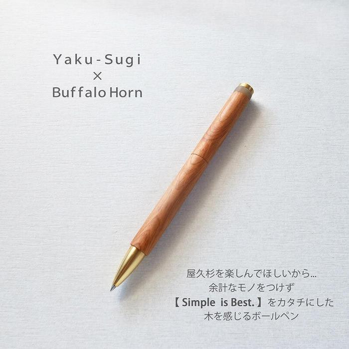 GO SLOW PEN ーYAKU SUGIー 結 MUSUBI 〔屋久杉と真鍮の文具〕 屋久杉は、屋久島の深い森に住む神さま。 そんな神さまたちが守る、特別な杉。 きっと、神さまのカケラなんだと思う。 【GO SLOW PENのこと】 「GO SLOW」に込めたのは、たったひとつ。 「ゆっくりいこう」ということ。 今の世界は急ぎすぎ、焦りすぎ、欲張りすぎ。 なんでも揃う、完璧で、張り詰めていて、ゆらぎがない。 それって、楽しい? ココロがほぐれて、いい顔できる? 安らぎは、感謝は、幸福は、あるのだろうか。 屋久島の時間と、ひとと、屋久杉が教えてくれること。 それが、「ゆっくり」ということ。 だから、ゆっくり作る。 ろくろを使わず手削りで ひとけずり ひとけずり ゆっくりのリズムで作るGO SLOW PENは、きっちりした正円の円柱じゃなく、森に立っている木のようなゆらぎのある円柱です。 その分手に馴染み、おさまりがしっくりくるような心地がします。 ゆっくりと作ることでしか生まれてこない「ゆらぎ」で、ひとまず深呼吸。 今だからこそ使って欲しい。 ゆっくりがつまった ゆらぎのかたまり。 深呼吸したくなる屋久杉ボールペン「GO SLOW PEN」できました。 手仕事の跡がはっきりと見える。 そんな使いこまれた床や廊下、柱のような雰囲気にココロがほぐれますように。 GO SROW PENは、ノック式のボールペンです。 ロクロを使わず、機械を使わず、人のリズムでつくりました。 【結】ーMUSUBIー〔YAKU-SUGI×SUI-GYU〕 1000年の時を刻む「屋久杉」と 古からのお守り「水牛の角」 ふたつの自然をむすんだ【結MUSUBI】のシリーズ。 「むすび」は「産霊(ムスヒ)」がルーツの神さまの言葉。 ひとと自然のご縁を結ぶ、つなぐ、創る、留める。 いきものが森に引き寄せられるように、ひとと自然をむすんでいけたら。 そんなことを考えながら。