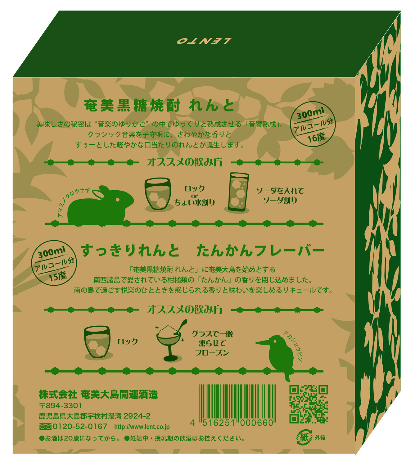 黒糖焼酎「れんと」と「すっきりれんとタンカンフレーバー」のセット商品。