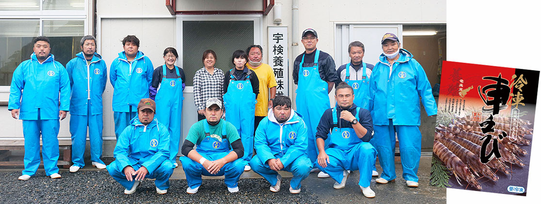 黒潮本流の好影響を受け、車えびの養成条件としては大きなメリットがあります。自然環境を活かし、良質の車えびを生産しています。天然の入江を活用した養殖場としては国内最大級の大きさの養殖場と言えます。