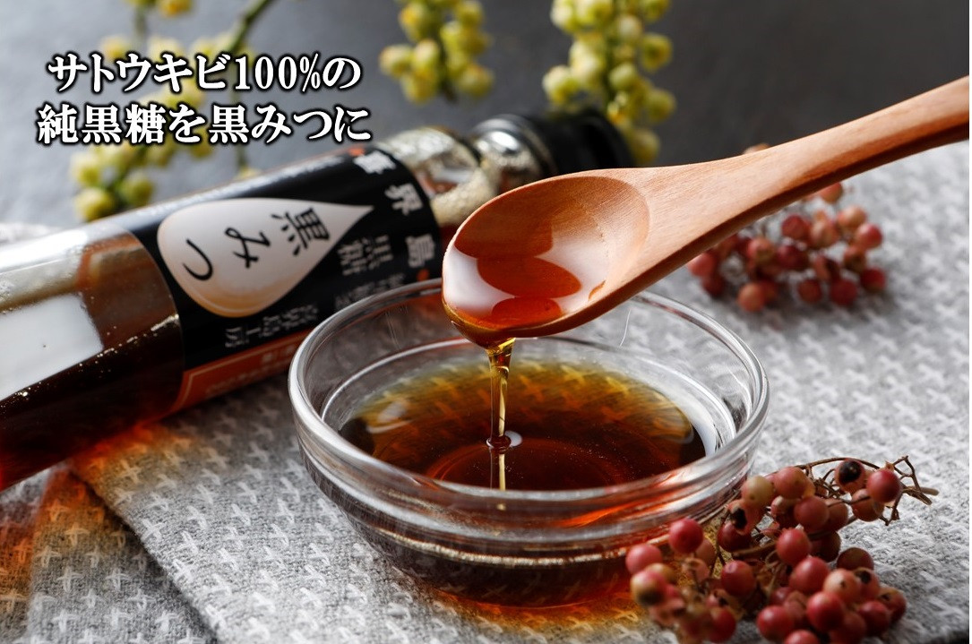 喜界島工房の黒砂糖を滑らかで優しい黒みつに仕上げました。