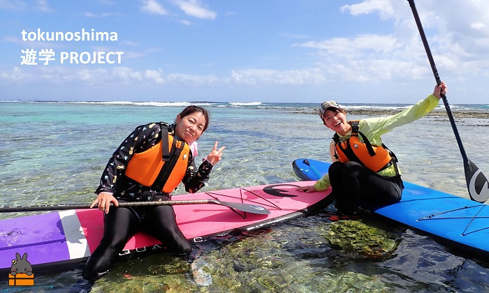 こちらのツアーでは、ガイドの川口さんに乗り方などを教わりながら、徳之島の透き通る海で南国の日差しや爽やかな風を感じながらSUPを楽しむことができます。