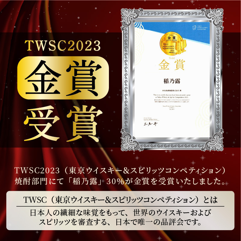 この度、TWSC2023(東京ウイスキー&スピリッツコンペティション) 焼酎部門にて「稲乃露」30%が金賞、「はなとり」 25%が銀賞をそれぞれ受賞いたしました。