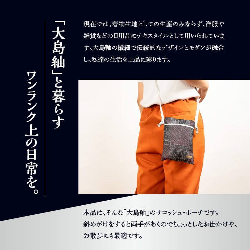 本場奄美大島紬 伝統織物を日常のファッションに! 本場奄美大島紬 サコッシュ・ポーチ(幾何学模様) W040-004-1u