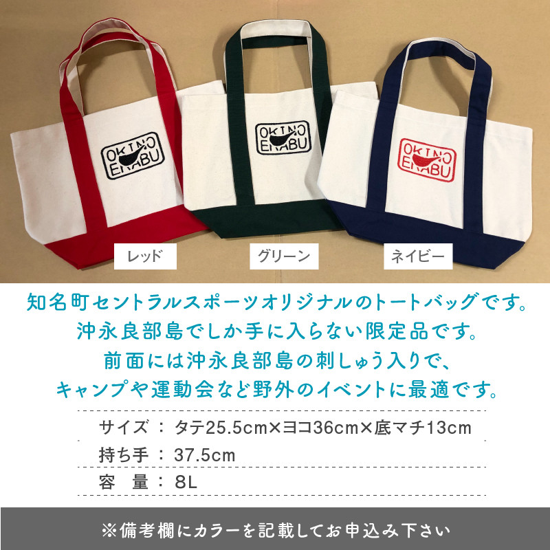 沖永良部島 限定 トートバッグ 選べる 3色 レッド 赤 グリーン 緑 ネイビー 紺 A4サイズ 適応 チャックなし 大きめ オリジナルトート 鹿児島県 知名町 お取り寄せ 雑貨 バッグ 鞄 エコバック 日用品 送料無料