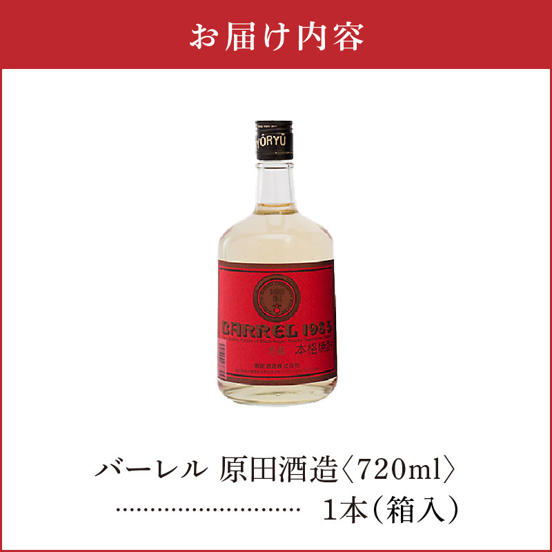沖永良部島からお届けします! バーレル 原田酒造 38度 箱入 720ml1本 C047-003-01