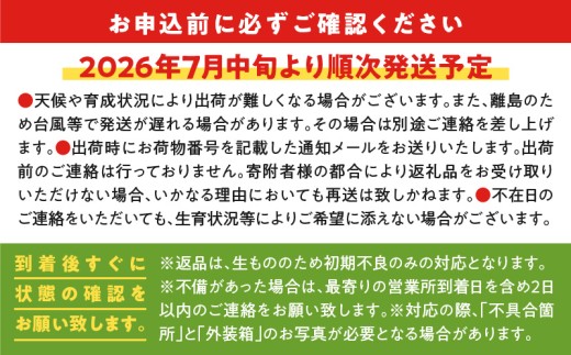 ※天候や育成状況により出荷が難しくなる場合がございます。また、離島のため台風等で発送が遅れる場合があります。その場合は別途ご連絡を差し上げます。