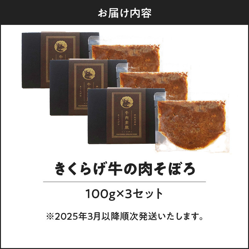 牛・ひと・環境に優しい黒毛和牛の牛肉そぼろです! 【2025年先行予約】きくらげ牛の肉そぼろ 100g×3セット C037-003-03