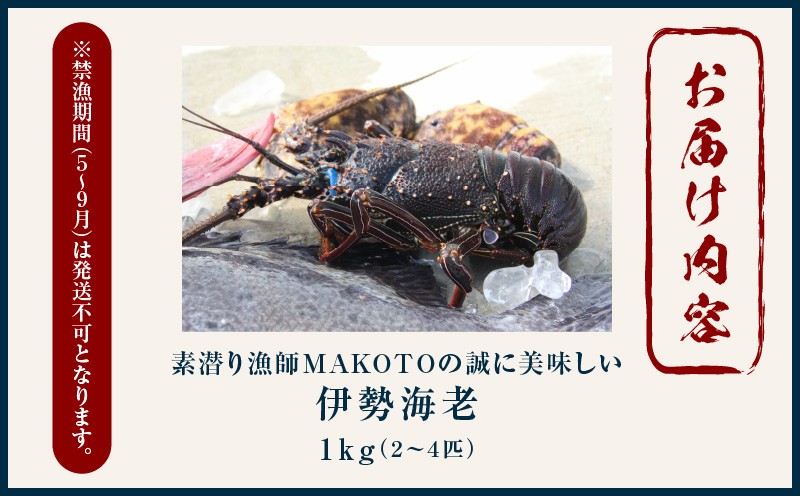 素潜り漁師MAKOTOの誠に美味しい伊勢海老 1kg(2~4匹) C074-…