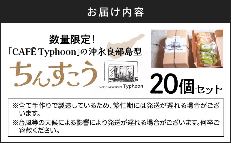 大人気店「CAFÉ Typhoon」のちんすこうがついに返礼品に登場! 数量限定!「CAFÉ Typhoon」の沖永良部島型ちんすこう 20個セット C072-001-02