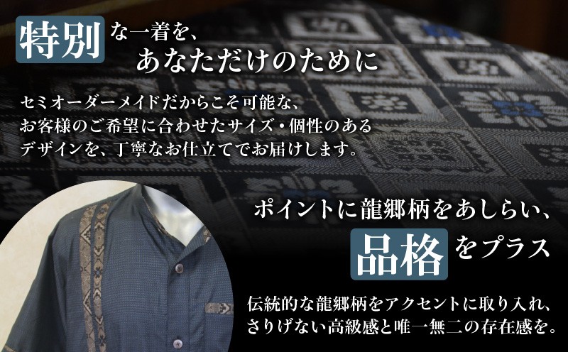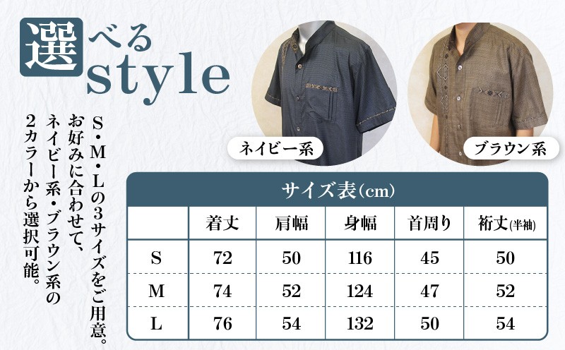 シャツ メンズシャツ 半袖 大島紬 セミオーダーメイド ネイビー ブラウン 伝統 手作業 手作り 職人 atelier Kamijo 鹿児島 知名町 おすすめ ランキング プレゼント ギフト