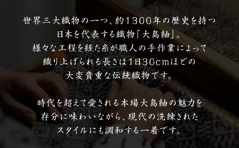 時代を超えて愛される本場大島紬の魅力を存分に味わいながら、現代の洗練されたスタイルにも調和する一着です。