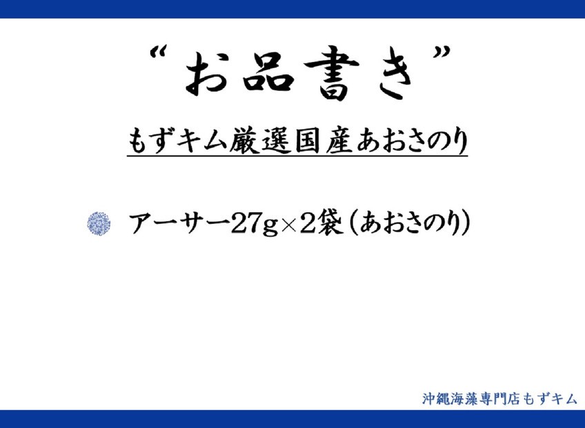 | 容量 | ・アーサー(あおさのり)27g×2 |