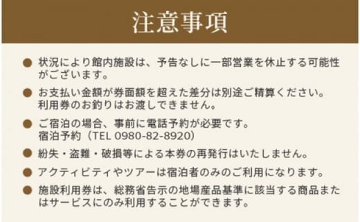 ※施設利用券は、総務省告示の地場産品基準に該当する商品またはサービスにのみ利用することができます。