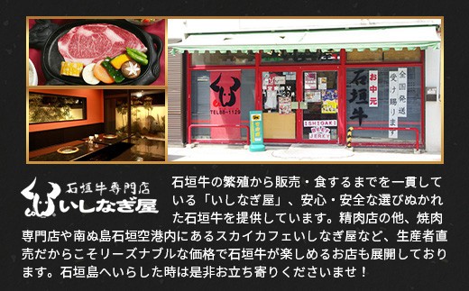 石垣牛の代名詞である、キメが細かく柔らかい肉質と、上品で甘味すら感じる脂をお楽しみいただけます。 A4等級以上の特選肉からお届けいたします。 【提供事業者:いしなぎ屋】 繁殖から販売まで直営牧場から一貫生産。 飲食店や卸売などの店舗を展開している。 【石垣牛とは】 日本の最南端に位置する南国・石垣島の風土と自然豊かな土地で育てられた石垣牛。そのほとんどが地元の小売店や飲食店で流通しているため、国内でもなかなか手に入らない純正の高級黒毛和牛です。 石垣牛は、八重山郡内で生産・育成され、生後20カ月以上を八重山郡内で肥育されることが条件。日本食肉格付協会が定める保留等級A・Bの中で、肉質等級が5等級・4等級が「特選」、3等級・2等級が「銘産」として認められています。 もともと石垣牛は、和牛の繁殖に適した環境の八重山から、仔牛の状態で松坂牛や神戸牛などブランド和牛の素牛として県外へ出荷されていました。しかし、2000年に開催された首脳国会議「沖縄サミット」のディナーでメインディッシュとして振る舞われ、その深い上質な肉質が反響を呼んだことで全国から取引の依頼が押し寄せ人気が急上昇。2003年にはその和牛としての高い品質に注目したJAおきなわの販売促進により島内での一貫した育成を始め、「地産地消」による安心・信頼とプレミアム感が一気に人気を押し上げました。この取り組みが評価され、2018年3月、JA石垣牛肥育部会が第47回日本農業賞「集団組織の部」特別賞も受賞しています。 石垣牛は、和牛として高い品質の子牛をそのまま地元で育ててあげることで、他ブランド和牛とはまた違って上質ながらも特徴的な味わいを持っています。さっぱりとした程よい霜降りの脂の中にもしっかりとした肉の味を嗜むことができます。