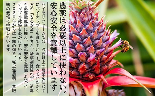 しかし肥料を最低限に抑え、えぐみのない、味にこだわったパインを育てているため、凝縮された甘味を味わえます。また、除草剤は使わず、消毒も必要最低限に抑え、安心安全を意識した栽培をしています。