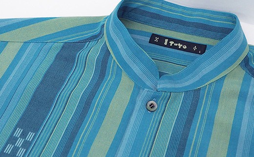 AZ-80 みんさー織 総手織りマオカラーシャツ(ニライカナイBL)Mサイズ