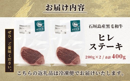 石垣島から、『お肉の女王』ヒレステーキをお届けいたします 石垣島産 黒毛和牛 新里牛 厚切りヒレステーキ (シャトーブリアン) (200g×2) 合計400g SZ-8