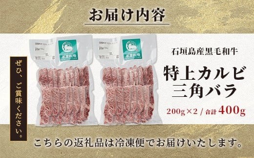 | 容量 | 特上カルビ三角バラ(200g×2) |