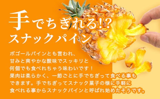 手でちぎってスナック菓子の様に手軽に食べれる事からスナックパインと呼ばれ始めたそうです。