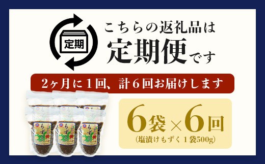 【石垣島産もずく定期便6回】2か月に1回『500g×6パック』を計…