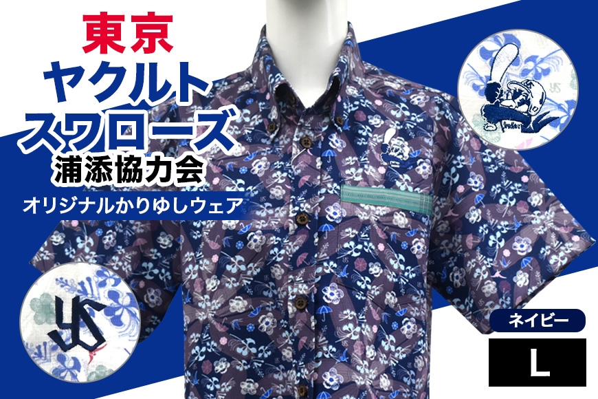 チョイス限定 チョイスPayポイントと交換できる品 【ネイビー/L】東京ヤクルトスワローズ浦添協力会オリジナルかりゆしウェア