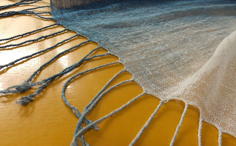 少しずつ藍を乗せていくグラデーション。 修行時代からずっと作り続けております。 幅広、薄手でサラリと気持ちが良いのであちこちで大活躍です。