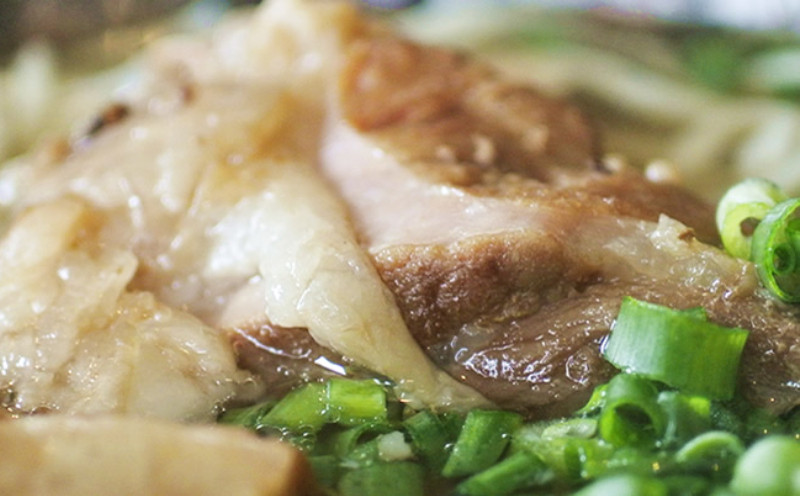 県産豚肉を秘伝のタレでじっくりと煮込んだ三枚肉はプルプルとした柔らかい食感が人気で、自家製麺との相性もバツグンです。