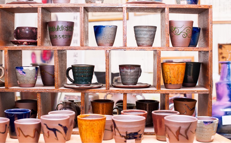丸勇陶房のやちむんは、まさしく一期一会。同じ形、同じ色はありません。