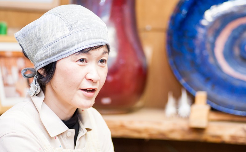 還元焼成の技法にこだわり、しぶい色と鮮やかな色が特徴。
