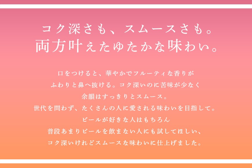 ビールが好きな人はもちろん、普段あまりビールを飲まない人にも試してほしい、今までにない新しい味わいに仕上げました。