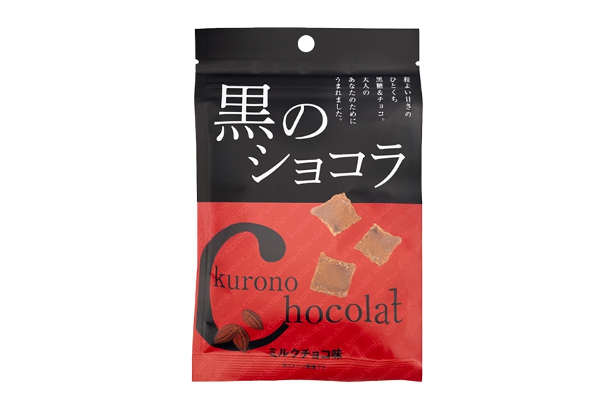 ミルクチョコ味:黒糖のやさしい甘みとミルクチョコのまろやかさが溶け合う、優しい味わい。