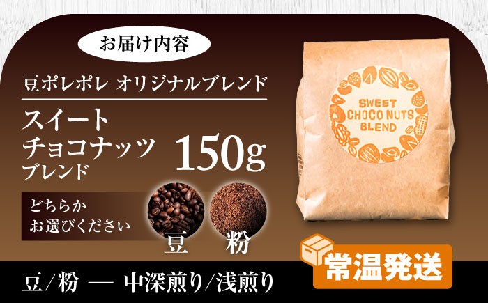飲んだ後の余韻は、まるでチョコナッツ。 豆ポレポレオリジナルブレンド スイートチョコナッツブレンド 150g コーヒー豆 珈琲豆 ブレンド ギフト 沖縄市 8000円 / 豆ポレポレ [BCAW008]