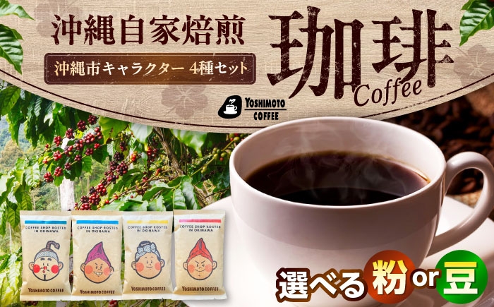 沖縄市のキャラクターコーヒーで癒しを♪本格的なコーヒーをご家庭でも楽しめます 【豆のまま or 粉に挽く】沖縄市キャラクターコーヒー100g×4種セット 珈琲 コーヒー コーヒー豆 ドリップ ギフト 沖縄市 / ヨシモトコーヒー [BCDN001]