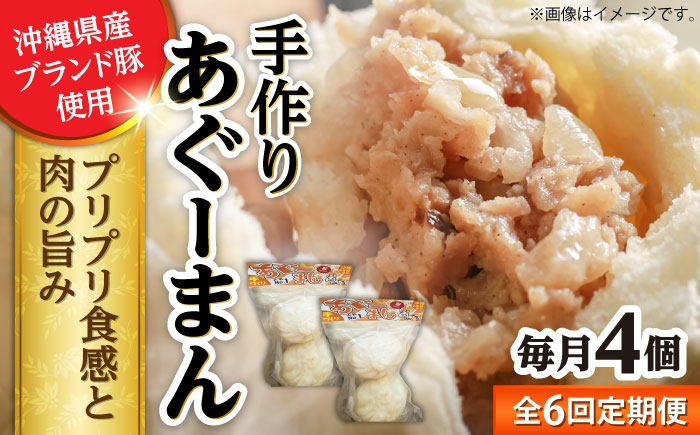 沖縄県産豚あぐー豚をつかった、手づくり豚まん! 【全6回定期便】あぐーまん 4個入り (2個入り×2P) 肉まん 豚まん 点心 お取り寄せ 冷凍 沖縄市 / 豚々茶舗 [BCBL027]