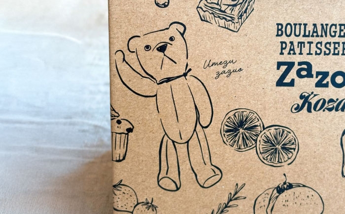 ZAZOUのマスコットである、フランスのアンティーク人形くまちゃん(梅図 ざずお)をモチーフにした焼き菓子の詰め合わせBOXを作りました。