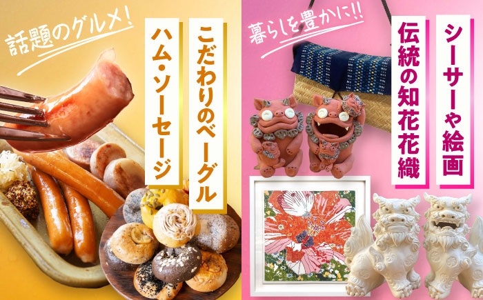文化、グルメ、エンターテイメントが「チャンプルー(ごちゃまぜ)」になった沖縄市ならではの魅力あふれる返礼品の中から、お好きなものをお選びください。