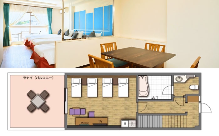 ゆったり広いお部屋で心地よい沖縄のひとときを。家族の団らんを邪魔しないゆとりがあります。