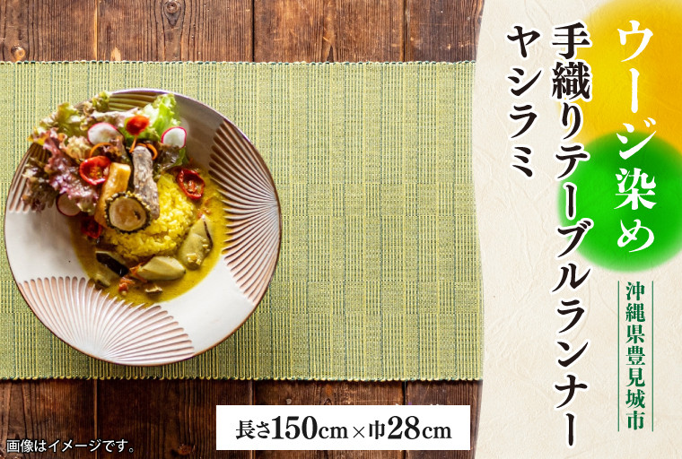 ウージ染め手織りテーブルランナーナミヌファ(波の葉)