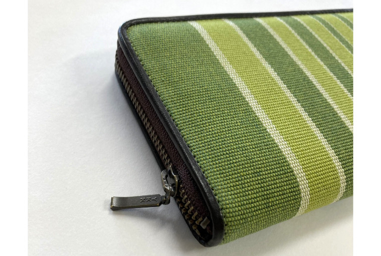沖縄のさとうきびの葉で染めた糸を使用して作ったお財布です。