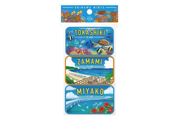 | 容量 | ミント缶タブレット(幅:約72mm 高さ:約42mm 奥行約15mm)16g 9缶 ・ウェイブ×1缶・首里城×1缶・ルート58×1缶 ・渡嘉敷島×1缶・座間味島×1缶・宮古島×1缶 ・石垣島×1缶・竹富島×1缶・由布島×1缶 |