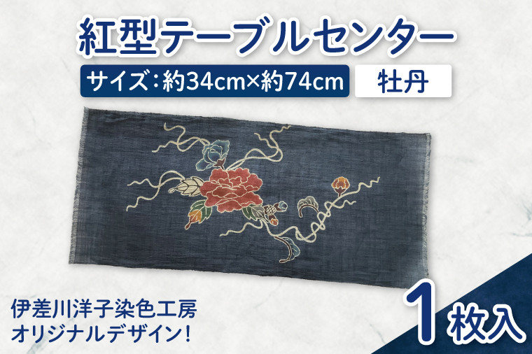 伊差川洋子染色工房オリジナルのデザインです。 紅型テーブルセンター(牡丹)|テーブルセンター 手染め インテリア 雑貨 染物 オリジナル 沖縄県 豊見城市(CZ008)