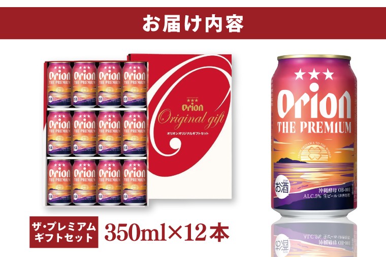 【沖縄で生まれたビールだからこそ、沖縄の”おいしい”を形に。】 ≪ オリオン ザ・プレミアム「ギフトセット」 350ml × 12本 ≫ 12缶 12本 生ビール 地ビール オリオンビール 沖縄 豊見城市 母の日 父の日 ギフト お歳暮 お中元 贈り物 プレゼント おすすめ お酒 宅飲み 送料無料(DQ049)