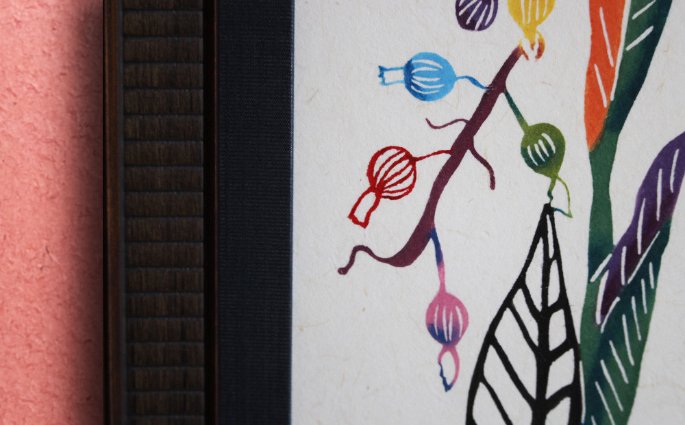 額縁もオリジナルでおつくりしています。落ち着いた色合いとシンプルなデザインで、どんなインテリアにもマッチします。