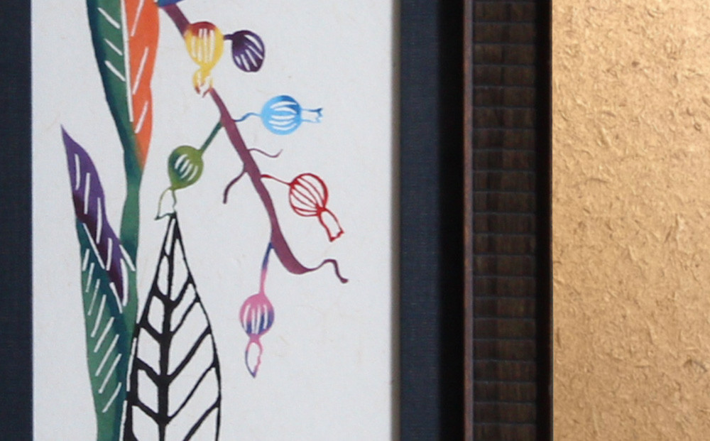 額縁もオリジナルでおつくりしています。落ち着いた色合いとシンプルなデザインで、どんなインテリアにもマッチします。
