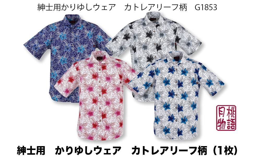 紳士用かりゆしウェア カトレアリーフ柄(M~LLサイズ)G1853