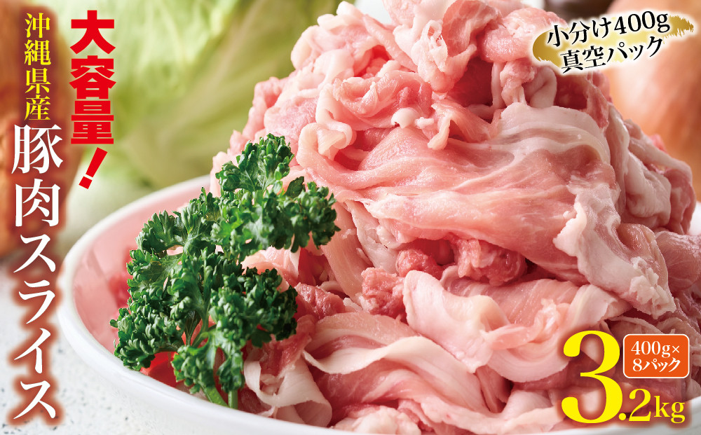 | 容量 | ●沖縄県産豚スライス肉(うで肉)400g(1パック)×8パック(計3.2kg) |